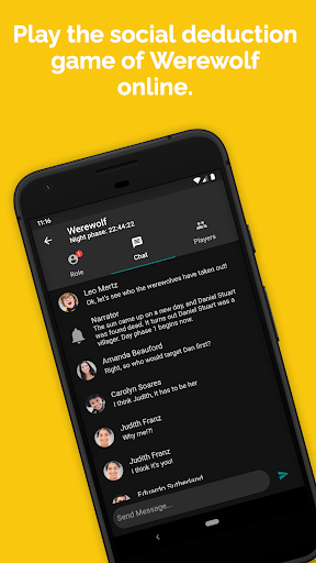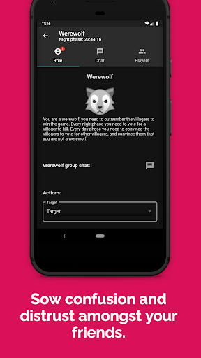 Wolfchat의 클래식 늑대 인간 게임을 위해 온라인으로 친구들과 함께하거나, 친구들과 채팅하십시오. WolfChat은 그 부실 그룹 채팅을 활성화하려는 새로운 메시징 플랫폼입니다. 당신은 늑대 인간이나 마을 사람이 될 것입니까? 당신은 불신을 뿌리거나 마을을 구할 것입니까?