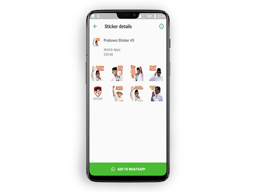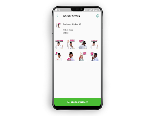 Aplikasi "Stiker Prabowo Sandi Untuk WhatsApp - WAStickerApps" merupakan sebuah aplikasi yang berisi kumpulan stiker prabowo sandi yaitu calon presiden indonesia nomer urut 2. Sticker ini tersedia untuk kalian gunakan secara gratis.