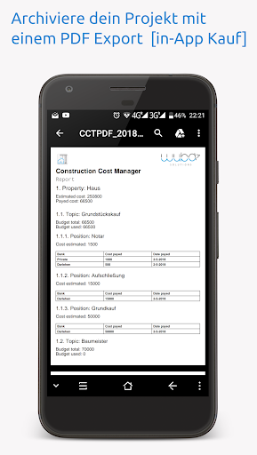 --------------------------------------------------- 당신은 성공적으로 완료했습니다 하우스 건설과 앱 덕분에 재정은 항상 통제하에 있습니까? 새 집에 축하드립니다! 수집 된 모든 데이터 및 저장된 사진 (인보이스, 건설 진행률)이있는 아카이브에 대한 PDF를 만들 수 있습니다.