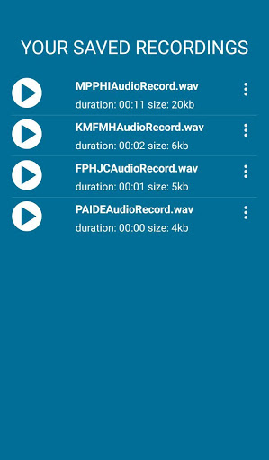 사운드 레코더는 회의, 음악, 회담, 클래스, 음성 메모 및 스마트 폰을 통해 다른 항목을 기록하는 편리한 도구입니다.녹화 프로세스 제어 녹음 사용하기 쉬운 녹화 목록 앱에서 녹음을 삭제하십시오. 재생 / 이름 바꾸기 녹음