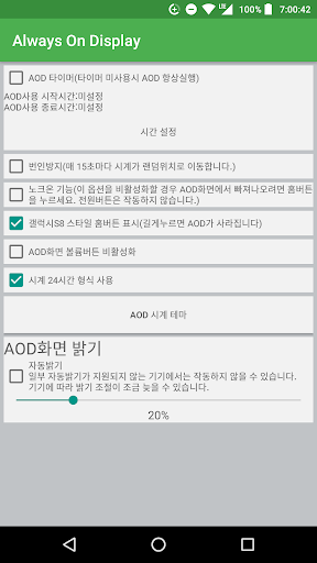 AOD가 기본탑재되지 않은 갤럭시S7/LG G5 이전 기기(갤럭시S6, LG G4 등)의 경우 저전력 디스플레이가 탑재되지 않은 관계로 이 앱과 유사한 앱을 이용하여 AOD기능을 이용하실 경우 AOD가 비활성화되어 화면이 꺼져있을 때보다 배터리 소모량이 크게 측정됩니다.