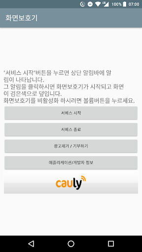 본 화면보호기 앱은 화면을 검정색으로 덮어주는 기능을 합니다.