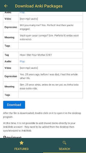 You can search for and download Anki flashcards from ankiweb within the program. You may use also your own packages, just open it from a folder of your storage.