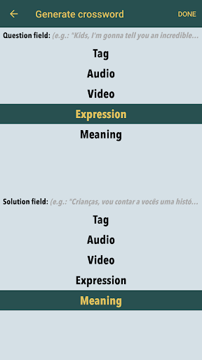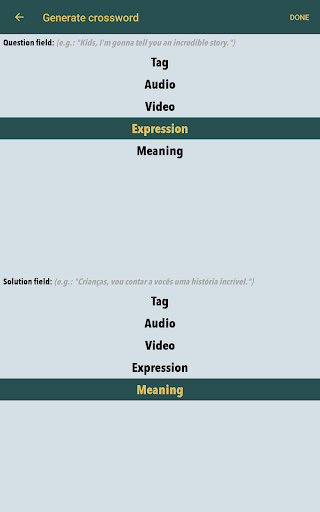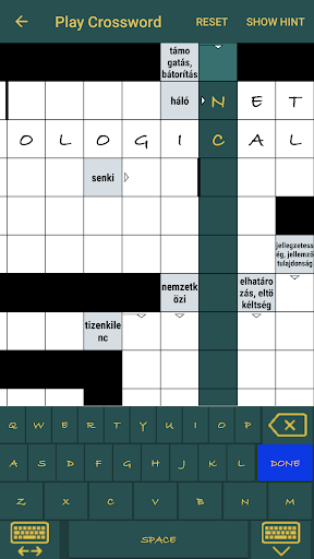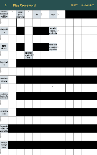 All you have to do to achieve this, that you have to find a good package for your language. Generate crosswords from it, and fill them many times. The app has a built in hint feature, so if you don't know some word, you don't have to search it in a dictionary.
