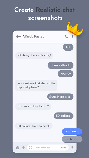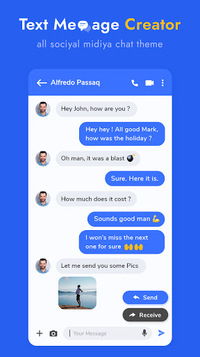 가짜 텍스트 메시지는 가짜 텍스트 대화와 가짜 Facebook 메신저를 만드는 도구입니다. 이 가짜 채팅 Messenger, Prank Chat 앱을 사용하면 메신저 채팅처럼 보이는 가짜 채팅을 만들 수 있습니다. 가짜 채팅 스크린 샷과 비디오를 사용하여 친구에게 보내십시오.