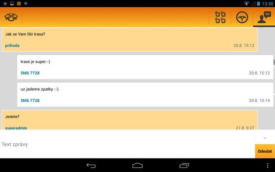 • obousměrná komunikace mezi řidičem a dispečerem pomocí zpráv