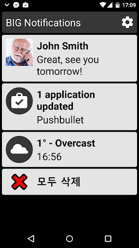 ✓ 시스템 알림 확대 및 큰 글꼴로 화면 가득 표시