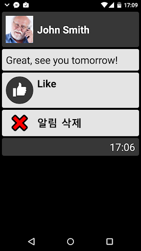 ✓ 해당 앱을 열지 않고도 큰 알림 동작을 바로 사용