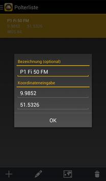 Der Polter im Wald ist der Startpunkt für die Holzwirtschaft. Holzeinkäufer und Transporteure müssen den Punkt im Wald finden. Wenn der Holzverkäufer bzw. der Auftraggeber die Koordinaten des Polters mitteilt, können die Koordinaten in der App erfasst werden und der Polter erscheint wahlweise auf einem Luftbild, einer Straßenkarte oder einer topographischen Karte. Die eigene Position wird während der Fahrt fortlaufend über GPS aktualisiert.