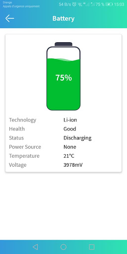 배터리 : 전류 수준의 배터리, 건강, 상태, 전원, 온도, 전압 등을 표시합니다