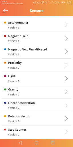센서 : 실시간 그래프가있는 장치에서 사용 가능한 센서 목록.