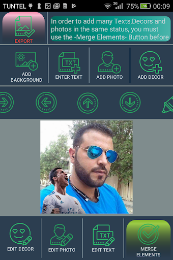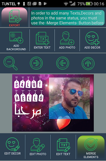 _ Your picture will be exported as a photo that you can save in your phone, share it on social sites ("facebook", "twitter") or send it by email, ...