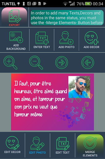 _ You can insert your photos and texts of your choice with fonts of French, English and Arabic writings