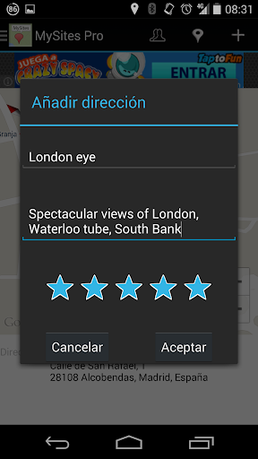 MySites Pro is an application which allows you to store all points of interest in you went, with extraordinary simplicity a simple, fast, smooth and comfortable interface. Internet connection is not mandatory. You only save the place you want to remember for later viewing on the map or navigate there.