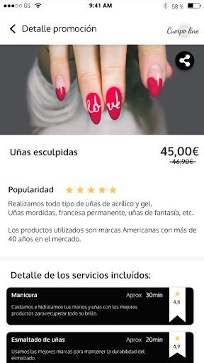 우리는 무르시아의 중심부에 위치한 15 년 이상의 경험을 가진 높은 아름다움의 중심지입니다.우리의 철학은 각 고객에게 독특하고 독점적 인 치료를 제공하는 개인화 된 치료법을 기반으로합니다.본체 라인에서 우리는 당신의 순간이 되려고 노력하여 가장 독점적이고 응석 된 사람처럼 느껴 지므로 편안하고 각 치료를 즐기고 있습니다.이제 앱을 통해 약속을 예약하고 최신 뉴스를 알고 있습니다.바디 라인, 몸을 껴안고 건강을 돌 보겠습니다.