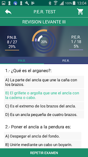 테스트 당 레크리에이션 보트 (PER) 또는 기본 탐색 패턴 (GNP)의 패턴을 얻을 수있는 도구는 다음과 같습니다. - 개인 데이터 또는 점수를 기입하지 않아도됩니다. BR> - 모든 시험을 가졌을 때까지 확인하십시오. - 결과를 저장하여 실패한 질문을 검토 할 수 있습니다. - 결과를 향상시키기 위해서는 시험을 반복하십시오. - 이 신청서의 시험 수정은 실제 법령 875/2014의 기준을 따릅니다.