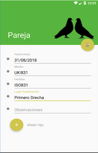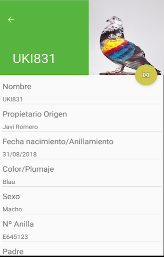 · Indicar todos los aspectos del animal: nombre, sexo, anilla, plumaje, padres, fecha nacimiento… etc.