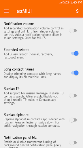 새로운 기능 extMIUI [Xposed] 1.5.0