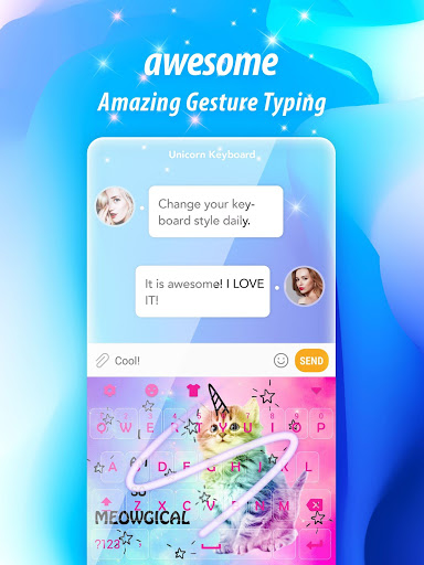 Unicorn Keyboard is a free cute girl keyboard app that makes typing Fast, Accurate, Cool and Fun! Unicorn Keyboard provides you thousands of exclusive emojis, GIFs, stylish keyboard themes, cute graphics, cool fonts, sounds, smiley faces, stickers, excellent typing experience.