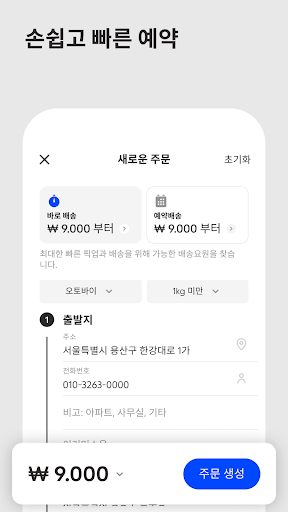 등록비, 할증 없는 간편한 예약접수. 시스템을 통해 거리비례 운임을 바로 확인하실 수 있으며, 스마트 매칭 시스템을 통해 배송원을 배정 후 배송 진행 상황을 실시간 공유해 드립니다.