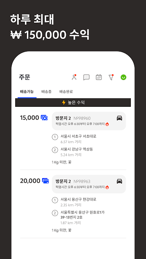 : 배송 시간과 물품을 확인 후 카카오네비와 연동하여 최적 경로로 배송을 수행하세요.