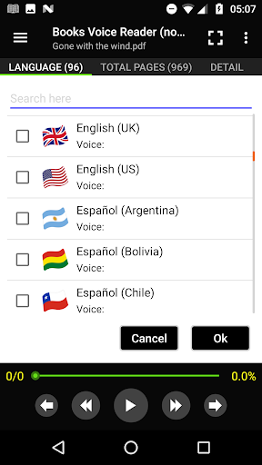앱은 책이나 파일을 읽을 수 있습니다.PDF, TXT, DOCX 또는 EPUB에서 96 개 언어로 사용됩니다.