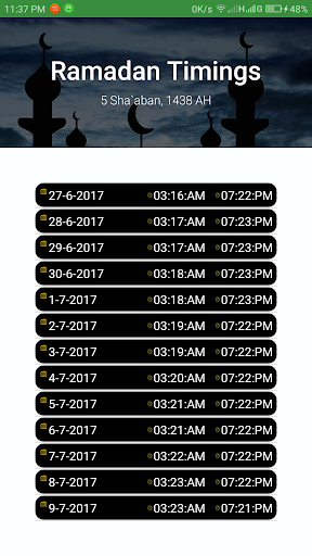 3. Sehri and Aftari Timings.