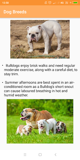 Dogs are considered the most loyal animal to humans. The human and dog relationship is continuing from centuries. Also, Dogs have been bred from a very long time. The breeding has been either done by inbreeding dogs from same ancestral lines or by mixing various breeds. Today there are hundreds of variations of dogs with differences in appearance, weight and temperament. A selective number of species are taken in this app and explained in detail. This will help the dog buyers to select from a vast array of dogs without any confusion.