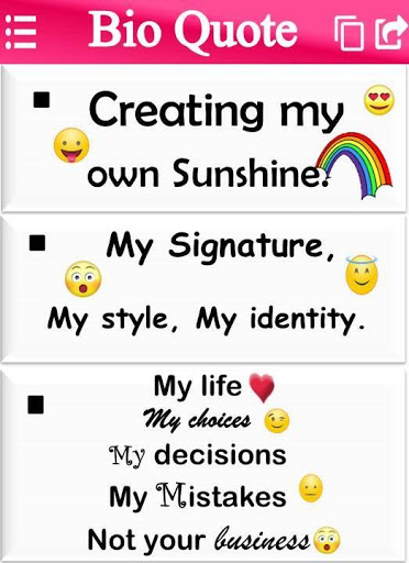 이 응용 프로그램에서는 Insta BIOS 및 영어로 새로운 견적 컬렉션을위한 최상의 아이디어를 얻을 수 있습니다. 이 응용 프로그램에서는 실제로 당신의 성격에 대한 완전한 소개를주는 시원한 BIOS 아이디어를 찾을 수 있습니다. 여기서 멋진 BIOS 아이디어의 큰 컬렉션을 얻을 수 있습니다 - 멋진 BIOS 아이디어 고유 한 Insta Captions 해시 태그 진정한 생각 캡션 컬렉션 낭만적 인 상태 Cool Quotes instagram 힌디어 또는 영어 캡션 태도에 대한 아이디어 우정 재미있는 그림 insta 캡션입니다. 이 응용 프로그램을 온라인으로 사용할 수있을뿐만 아니라 오프라인도 사용할 수 있습니다.이 응용 프로그램에서는 해시 태그 힌디어와 영어 캡션 Attitud가 Insta Caption BIOS 아이디어에 대한 Attitud를 사랑하는 멋진 Insta BIOS 아이디어가 주어졌습니다. 이 앱은 온라인뿐만 아니라 오프라인으로 사용할 수도 있습니다.