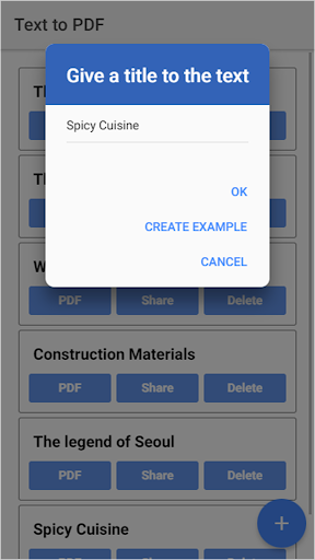 텍스트를 PDF 파일로 변환 할 수있는 매우 간단한 응용 프로그램.