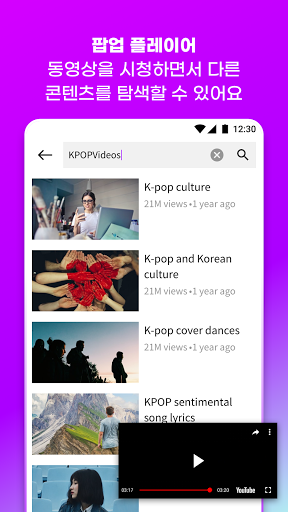 팝업 플레이어 : 영상을 감상하면서 다른 채널들을 탐색할 수 있습니다