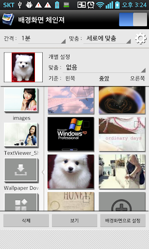 (이미지 목록에서 사용할 이미지들을 체크해 주고 자동 변경 스위치만 켜주시면 일정한 주기로 배경화면이 변경 됩니다.)