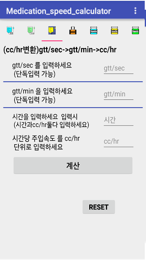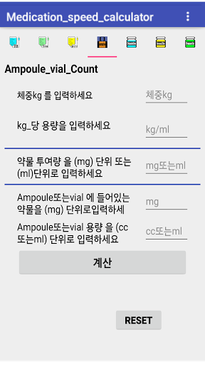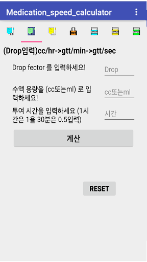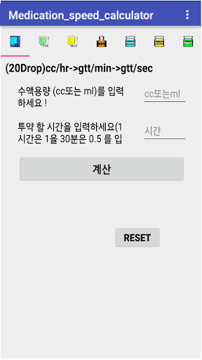 Mdication speed calculator 는 수액 속도 계산을 좀 더 편하게 하기 위해 만든 App 입니다.