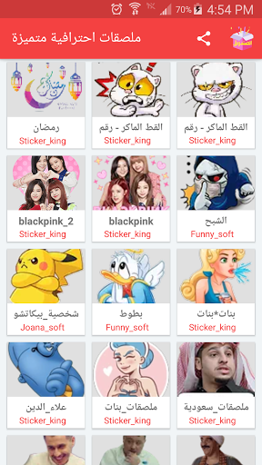 독특한 전문 스티커는 친구들과 참여를위한 응용 프로그램을 제공하여 특별 포스터의 특별한 스티커 세트를 그림입니다. 응용 프로그램은 문자와 유명한 걸프, 일관성 및 화합물 및 스티커를 포함하여 아랍어 포스터의 많은의 무료 사본을 포함 아침, 저녁 및 기타 레이블뿐만 아니라 만화 캐릭터. 곧 우리의 정식 버전에 훌륭한 전문 포스터가 될 것입니다 ....