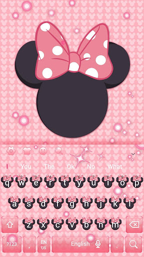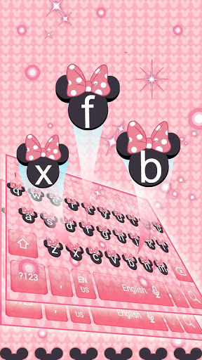 This Pink Minny Bowknot keyboard is designed with Cute pink Minny icons on cute glitter and Minny pink bowknot wallpaper.