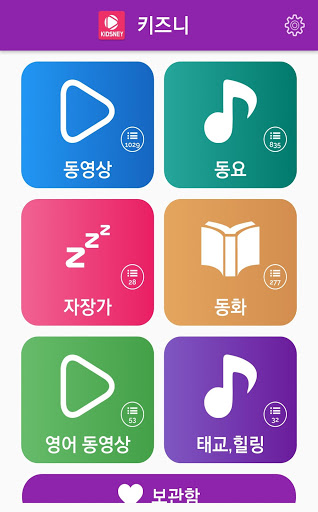 아이들이 좋아하는 동영상, 무료동요 등을 찾기 쉽게 구분해놓았어요.