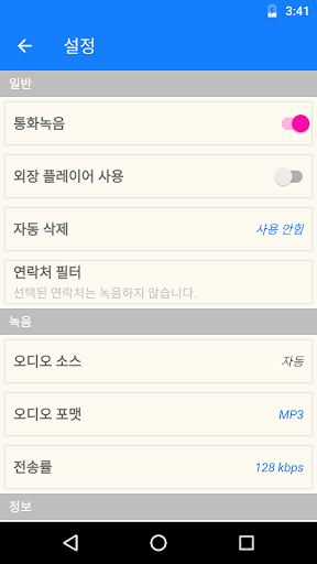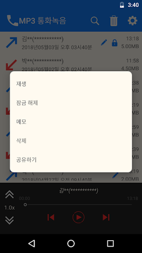 - 녹음된 통화파일을 일정시간이 지나면 자동으로 삭제하는 옵션 제공.