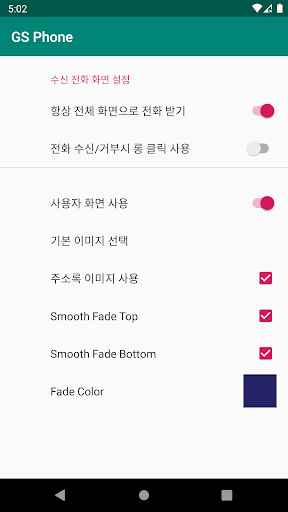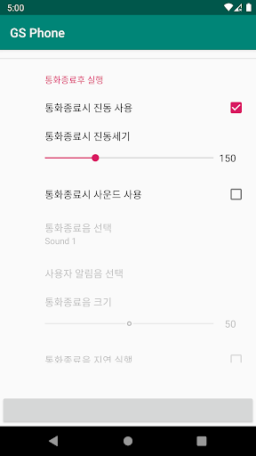 통화 종료 후 진동, 소리, 홈 이동 기능