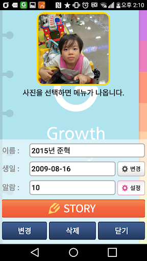 아이들의 성장과정을 주기적으로 체크하여 사진과 함께 메모할 수 있는 스마트폰 어플