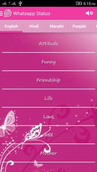 This app contain status in All major Indian Language like English,Hindi,Marathi,Bengali,Gujarati,Marathi,Tamil,Punjabi,Telugu And Kannada..