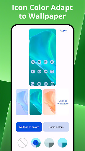 2.3D Droid13 Launcher 지원 앱 아이콘 색상이 배경화면에 맞게 조정됩니다.