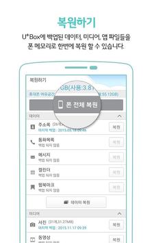 - 스마트폰 데이터를 한번에 쉽게 U Box 클라우드에 안전하게 백업하고 복원하는 기능입니다.