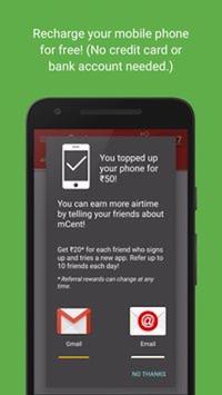 Use mCent and get free recharge to top-up data, talktime, and SMS.