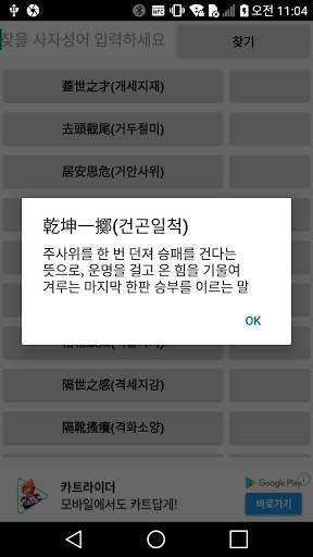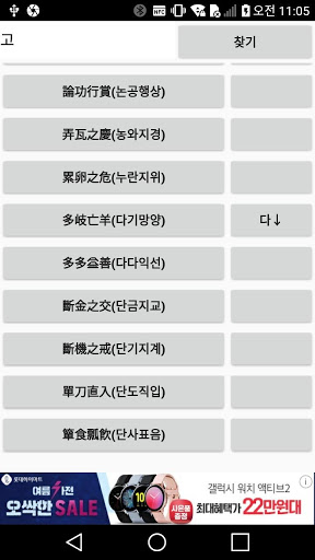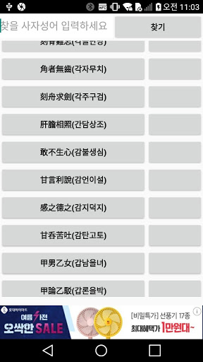 알려진 모든 사자 성어를 공부함! 검색을 통해 바로 찾을 수 있어요. 사자성어가 잘 생각이 안나면 스크롤을 하여 찾을 수 있어요 ---- 개발자 연락처 : picky75@naver.com