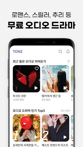 - 모든 작품 무료! 결제 없이 TONZ에 있는 드라마를 마음껏 들어보세요.