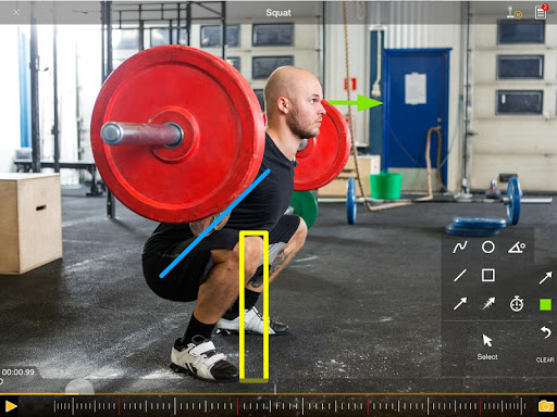 • 그리기도구, 태그, 움직이는 화살표, 포인터, 각도 측정기와 같은 고급 분석도구를 사용하여 분석하기 원하는 장면을 강조하여 분석