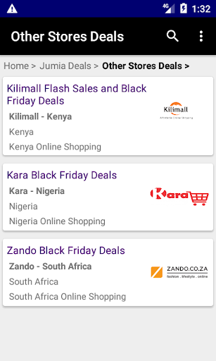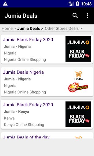 Access 'Deals of the day' and 'Black Fridays Deals' from Jumia and other stores.