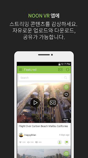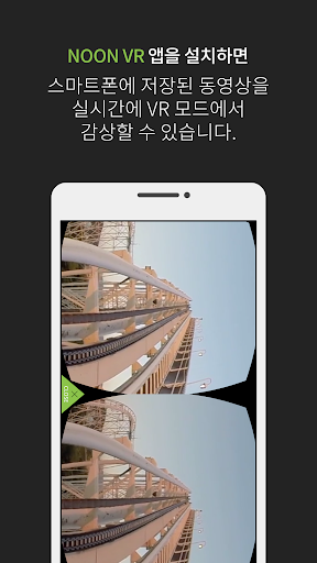 - 실시간 감상: NOON VR App을 설치하면 스마트폰 또는 PC에 저장된 동영상을 실시간으로 VR 모드에서 감상할 수 있습니다.