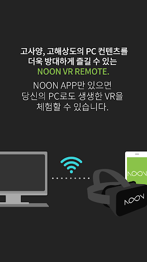 -PC연동: 내 컴퓨터의 동영상, 게임을 NOON VR APP에 연동하는 Remote 기능을 이용해 다양한 VR 컨텐츠를 즐길 수 있습니다.