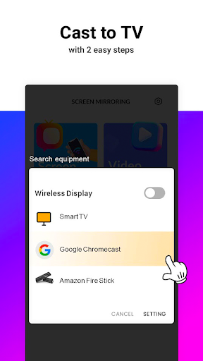 Screen Mirroring - Miracast for TV allows you to mirror your smartphone on the TV screen in high quality.